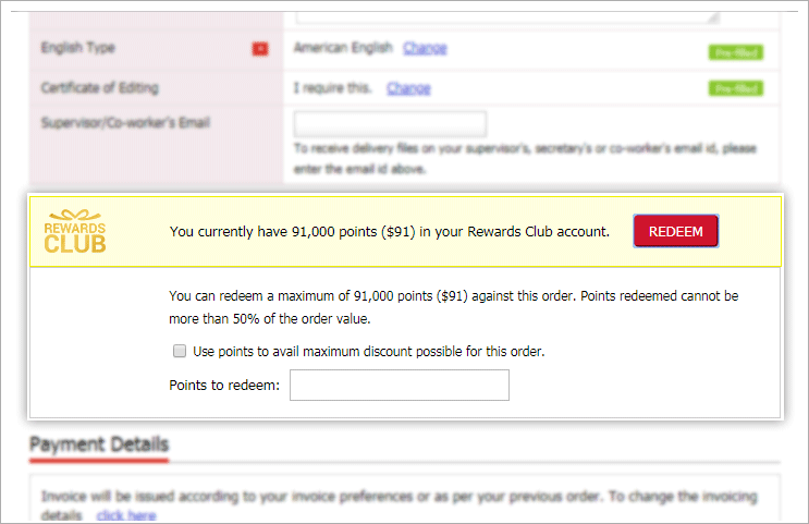 Once you collect a minimum balance of 15,000 points, you can start redeeming points for deduction in price and/or to use Journal Finder, and Readability Score and Writing Style Assessment.
